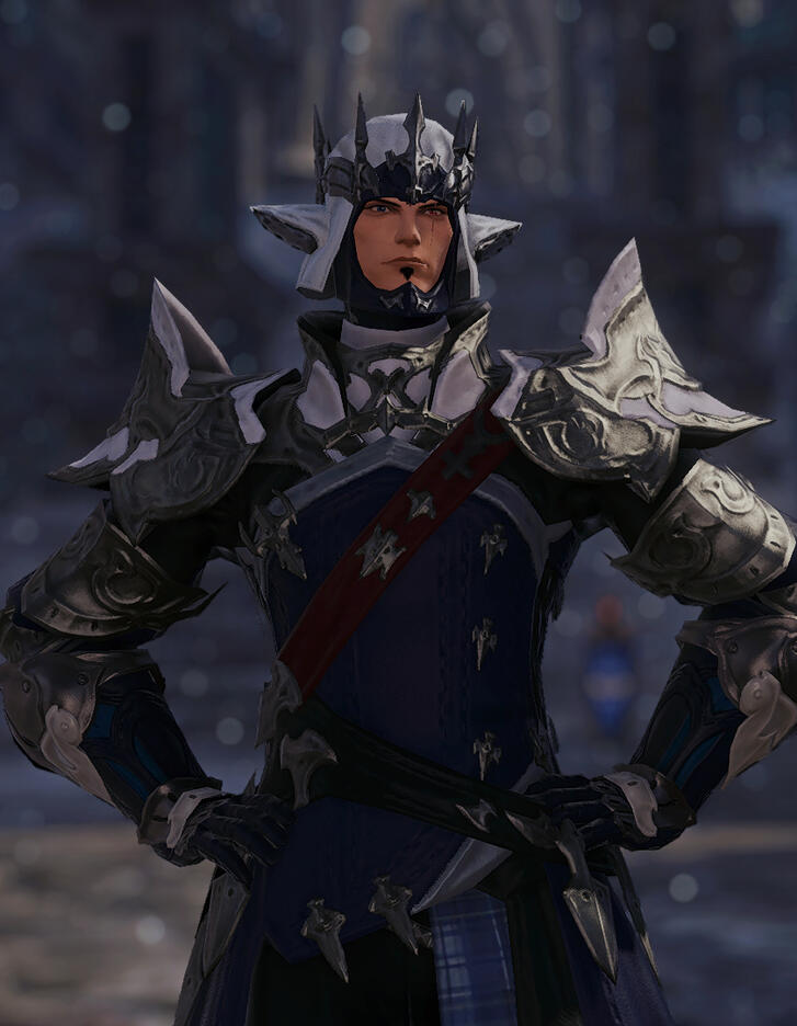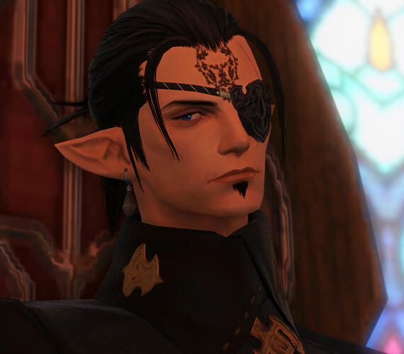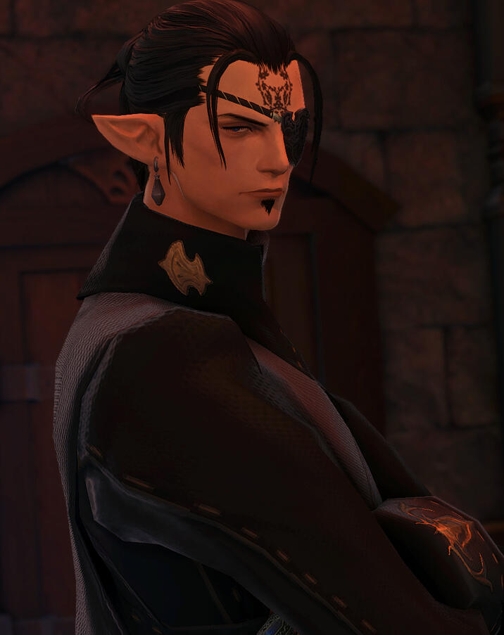 To any whom set eye on Armont for the first time, be it at a glance or in conversation would easily be met with a singular hue of skyward blue, tired, slow rolling towards it's next target. Across from it bears a metal plated eyepatch, one which conceals his left and is adorned by a series of ages old scars. Three to mark the eye by dragon claw, each scar-white strip sunk into flesh from forehead to upper cheek. This marked one of many scars the man holds on himself, though it being the most visible and notable he bears. Looking lower shows a large burn mark at his neck, it most often covered by collar or concealed by chainmail, but upper portions still seen reaching upwards at his lower jawline on the side. There is no care to cover these scars of war, no care to show them. His attire in it's essence, no matter what cut of cloth worn be it formal or not, most often than not, is fitted to form, collared, kept clean, crisp and well adorned by silver over gold. In most instances the color of attire is favored to be darker greys, blacks, the occasional deep blue hue that blends well with the aforementioned.Armont himself is most often experienced as abrasive, dour, or outright dismissive towards the occasional few whom conduct themselves poorly around him. In cases to where others are well put together, Armont will only conduct himself to match the tone of the room, often sharing tale of his time in Ishgard, business and greeting others casually, albeit nearly always briefly. To those whom take to banter or pose themselves poorly, expect short tolerance and shorter stay before the man either carries on or leaves the situation.